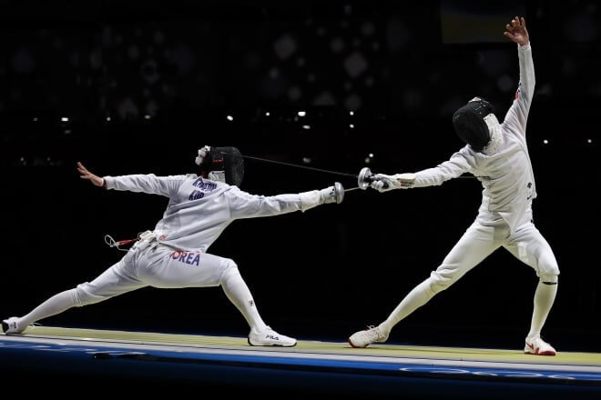 펜싱은 에페 경기 단판 승부로 결정합니다.