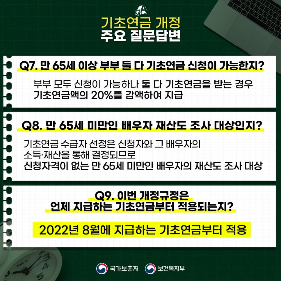 대한민국의 만 65세 어르신이라면 궁금해하실 만한 2023년 8월 개정된 기초연금에 대한 궁금한 질문과 답변을 모아봤습니다.