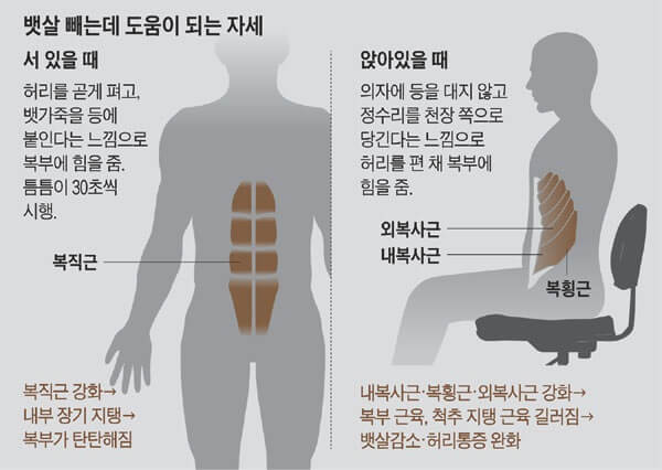 이때 자세만 살짝 바꿔도 뱃살을 빼는 효과를 볼 수 있습니다.