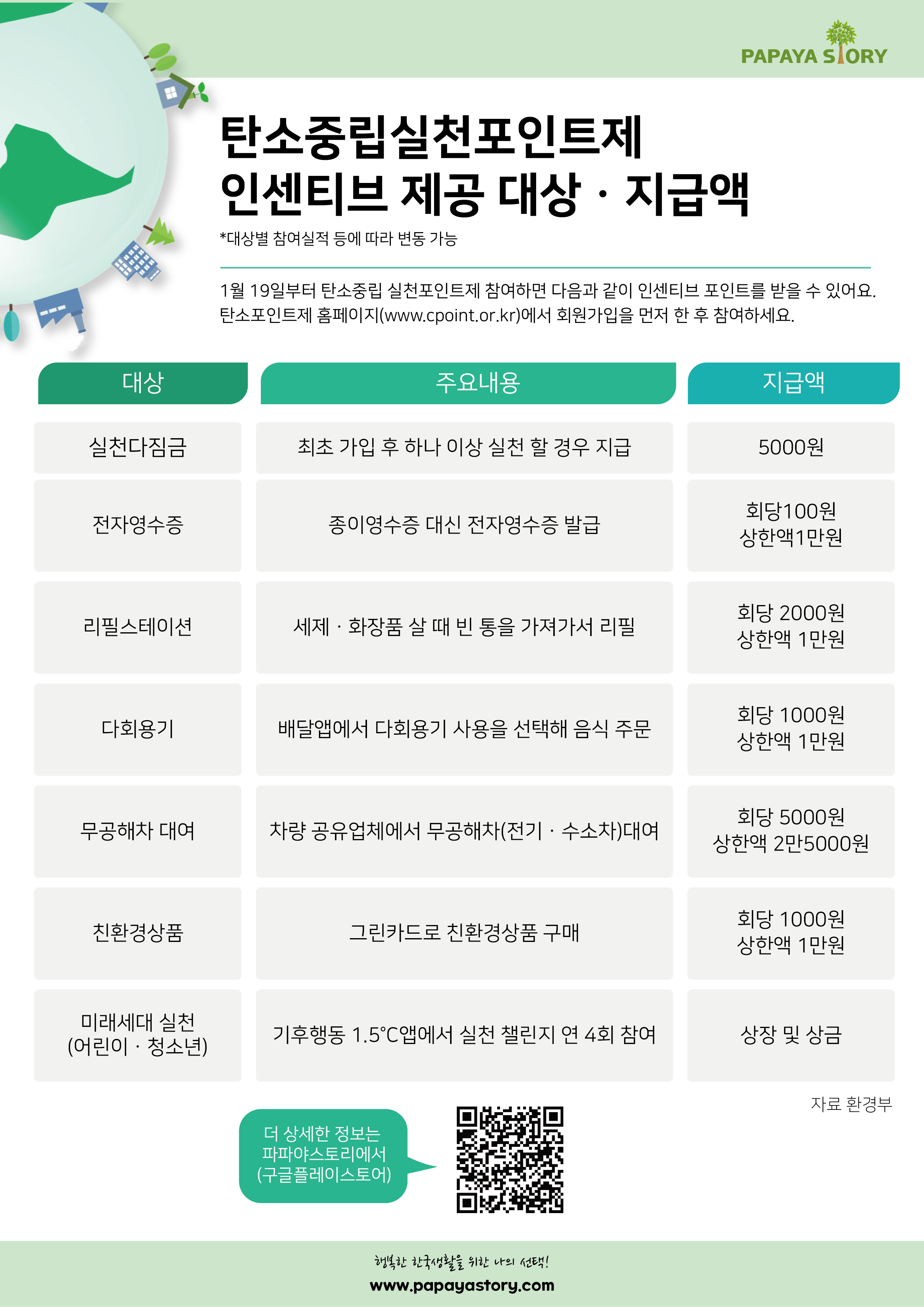 이에 따라 2022년 1월 19일부터 탄소중립 실천포인트제 홈페이지 회원가입 후 탄소중립 실천활동을 하면 현금처럼 사용 가능한 포인트를 적립할 수 있습니다.