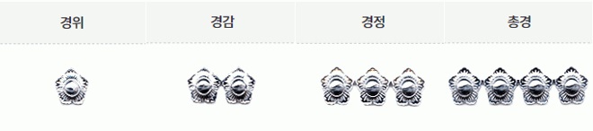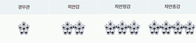 중앙에 태극장을 배치한 무궁화의 수로 구분되는데, 경위는 1개, 경감은 2개, 경정은 3개, 총경은 4개입니다.