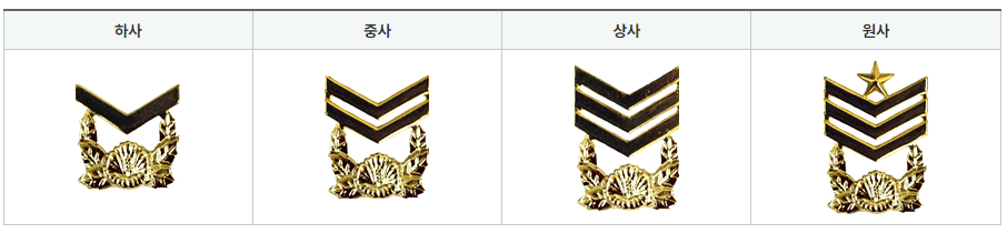 부사관은 원사, 상사, 중사, 하사,