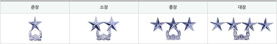 장성(將星) 장교(준장-소장-중장-대장-원수)로 나뉩니다.
