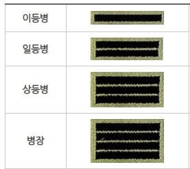 병사는 이등병-일등병-상등병-병장의 4단계로 구성되는데, 우리나라는 징병제이기 때문에 병사 계급은 대한민국의 모든 남성들이 군에 입대하여 주어지는 계급입니다.