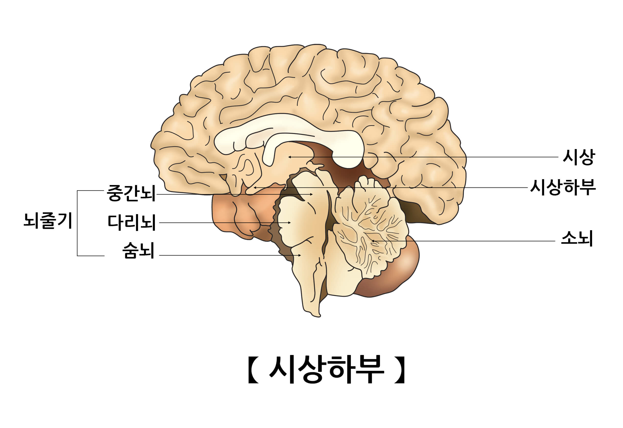 시상하부는 우리 몸에서 칼로리 흡수가 얼마나 되는지 감지하고 이에 맞춰 배고픔이나 포만감에 관한 신호를 보내 칼로리 섭취를 조절합니다.