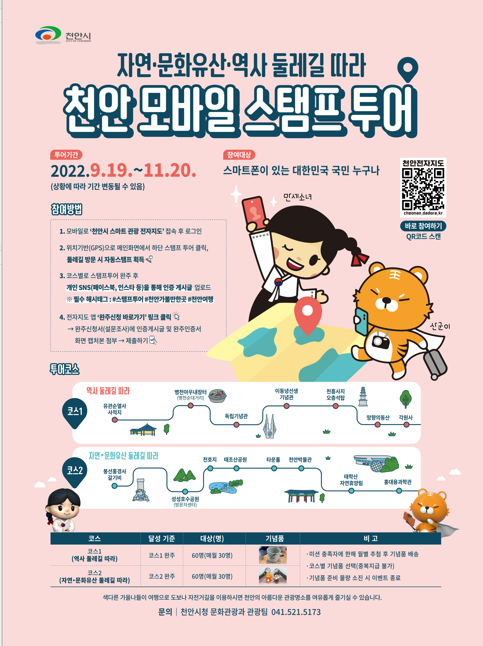 '천안 모바일 스탬프 투어' 둘레길도 걷고, 기념품도 받고