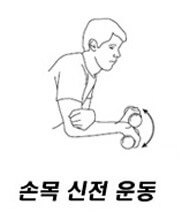 통증이 가라앉고 가벼운 스트레칭을 할 수 있으면 팔꿈치를 구부린 상태에서 손목 스트레칭을 시작합니다.
