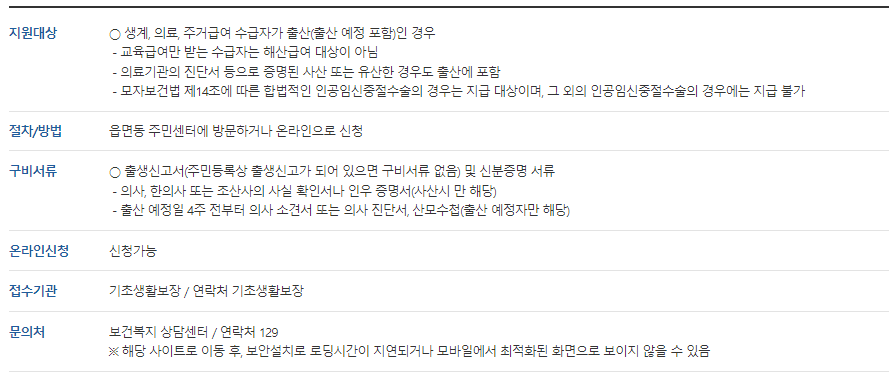 해산급여 지원내용과 신청방법