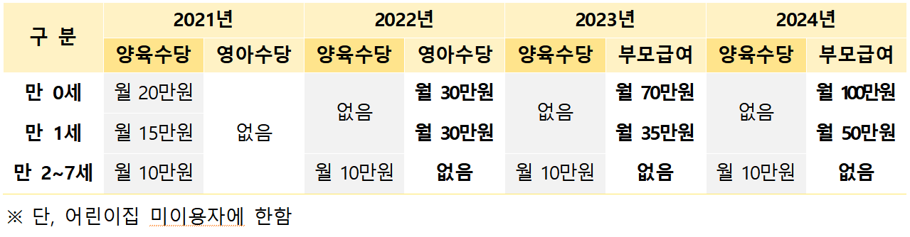 내년부터는 부모급여가 신설되면서 영아수당이 부모급여 체계로 합쳐집니다.